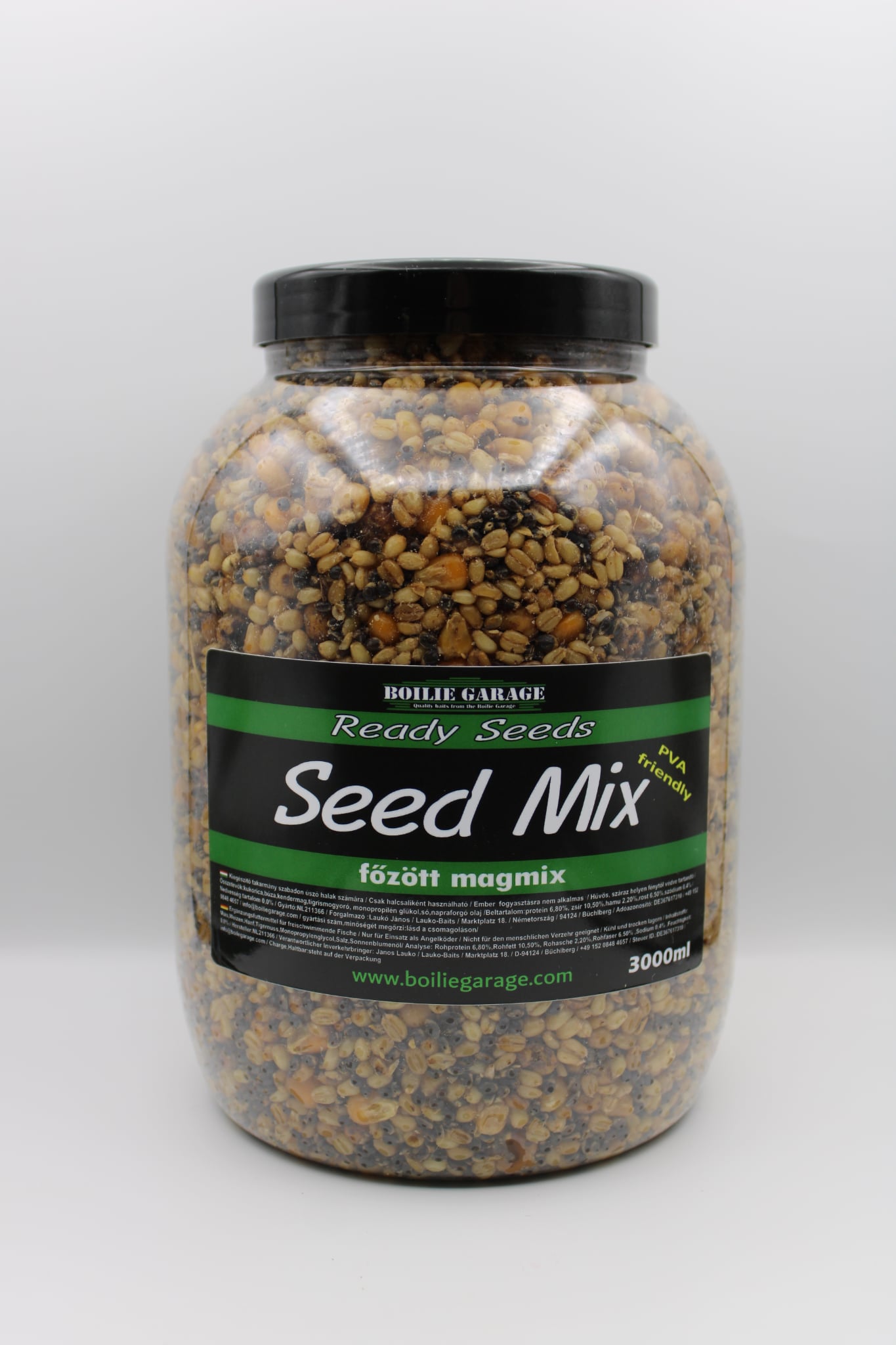 Használatra kész, főtt magmix 4 féle mag keverékéből. Összetevői között megtalálható a kukorica, búza, tigris mogyoró és kendermag is. Ponty és amur horgászatához egyaránt használható. 100%-ban PVA barát termék így bátran használhatjuk dobós(PVA "BAG"-es) horgászatok alkalmával is.